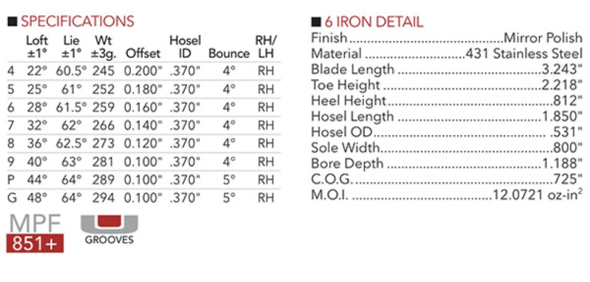 Heads can be ordered from 4 iron - Gap Wedge