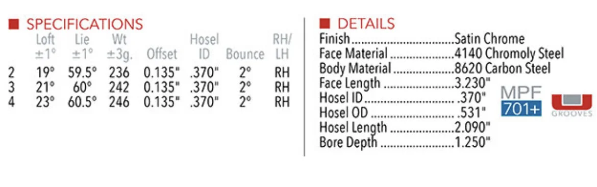 Only made in 2 iron (19°), 3 iron (21°), and 4 iron (23°) heads